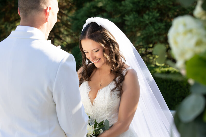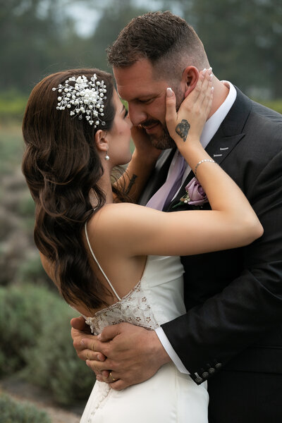 A mixture of country with a hint of elegance. A field of lavender shaped in a heart surrounding the couple, buzzing of bees in the distance, a dog in a tie greeting the guests and a little girl swinging in mommies arms. Laughter, tears of joy and a whole lot of love.